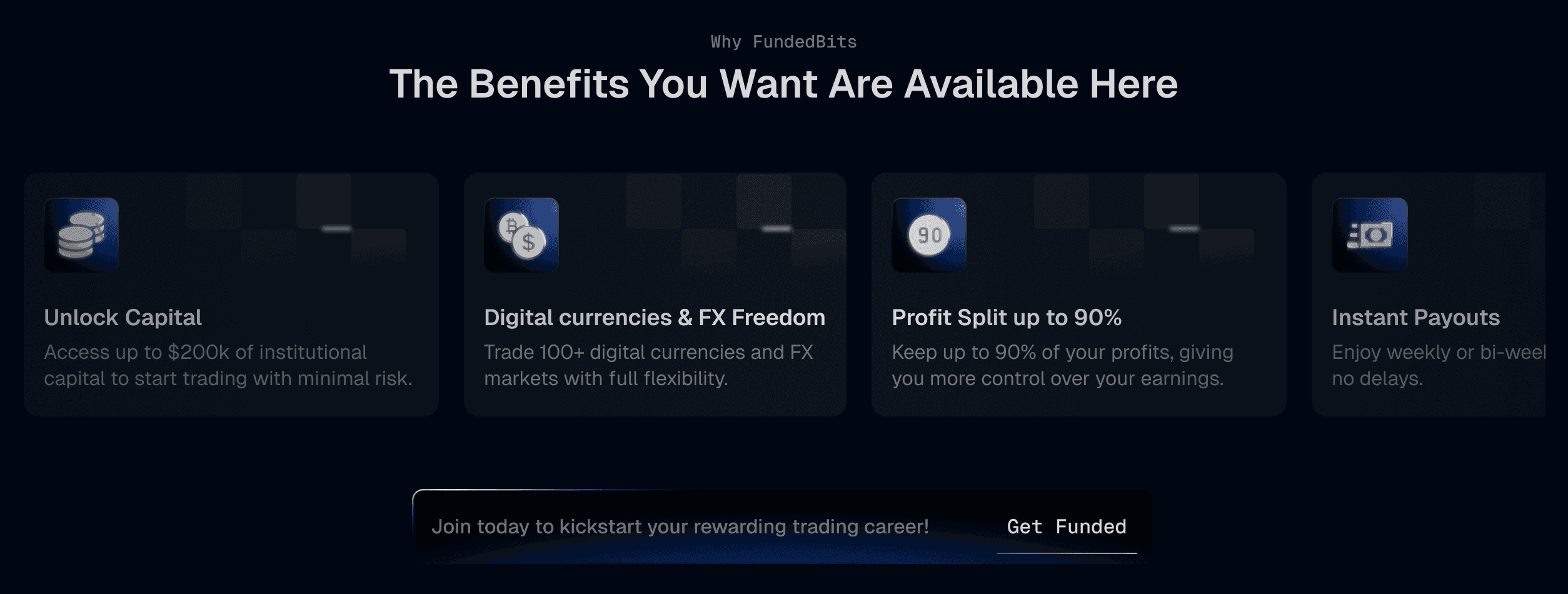 FundedBits: Web3 prop firm website design
